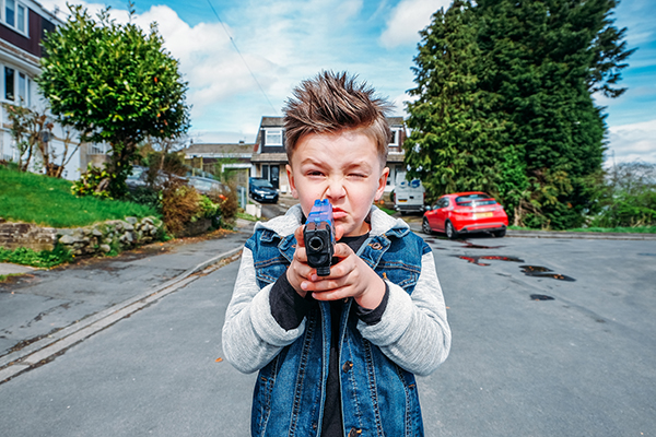 Un niño de 4 años pasea por el jardín… ¡con pistola en mano!