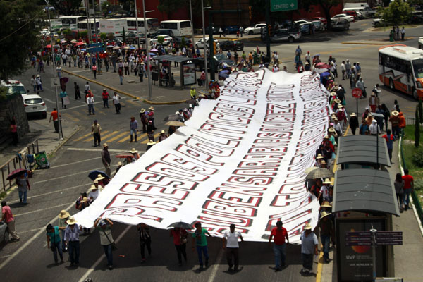 Un caos vial provocan integrantes de la organización 28 de Octubre que marchan sobre la autopista México-Puebla, en el tramo del parque industrial Finsa.