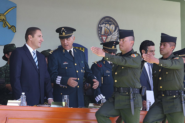 El gobernador Rafael Moreno Valle acompañó al secretario de la Defensa Nacional, Salvador Cienfuegos, a la Ceremonia de graduación de los Cursos de Formación de Sargentos primeros y segundos de las armas, cuerpos especiales y policía militar, realizada en la 25 Zona Militar.