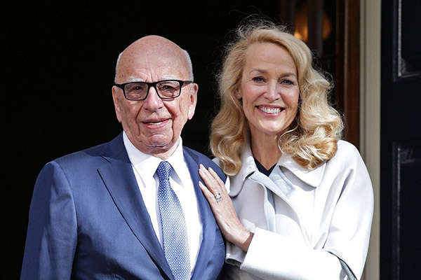 Murdoch, de 84 años de edad, y Hall, de 59 años, se comprometieron en Los Ángeles, California, en enero pasado.