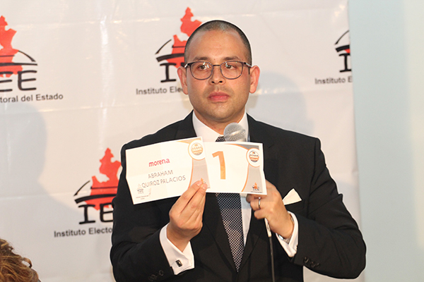 A las 18:10 horas en las instalaciones del Complejo Cultural Universitario se llevó a cabo el sorteo con la presencia de un representante de cada candidato y candidatas, así como de independientes, además de los consejeros del IEE.