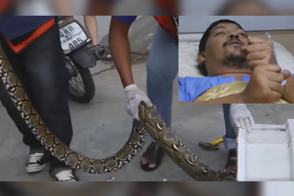 Por extraño que parezca y difícil de creer, un pitón mordió el pene de un hombre tailandés mientras usaba el baño de su hogar. Aunque los reportes señalan que perdió mucha sangre, se recupera en un hospital de Bangkok.