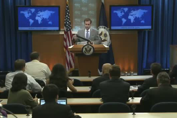 En un video que circula en redes sociales, se nota el momento en que John Kirby, vocero del Departamento de Estado de EU, sorprendió al reportero jugando mientras él hablaba de la alianza con más de 40 estados para derrotar a ISIS.
