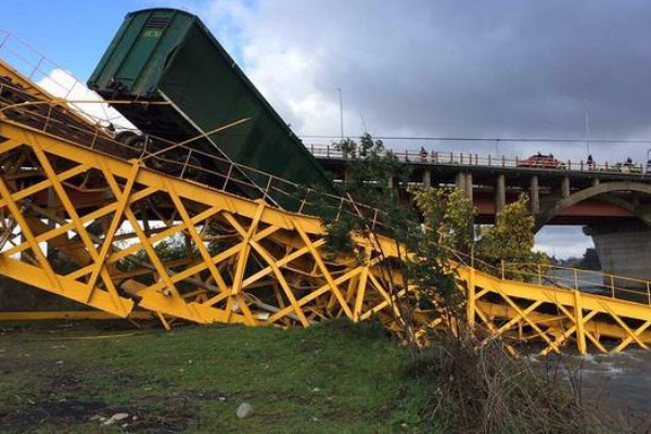 El puente, ubicado en la región de la Araucanía, situada 691 kilómetros al sur de Santiago, fue construido en 1898 y podría haberse desplomado por “fatiga de material”, de acuerdo con las indagaciones preliminares.