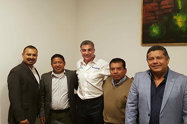 El gobernador electo, Tony Gali, se reunió con Alfredo Gómez, presidente de la Unión de Poblanos en el Exterior (Upext), a quien reiteró su compromiso para seguir trabajando por la comunidad que reside en los Estados Unidos.