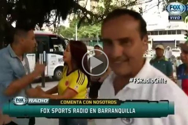 En algunas ocasiones, los periodistas se pueden llevar una que otra sorpresa al momento de ejercer su profesión. Un claro ejemplo es lo que le sucedió a uno de los reporteros de la cadena Fox Sports en Chile, quien entrevistaba a una aficionada de Colombia y fue encarado por el novio de la chica a quien, supuestamente, no le había parecido una de las preguntas.