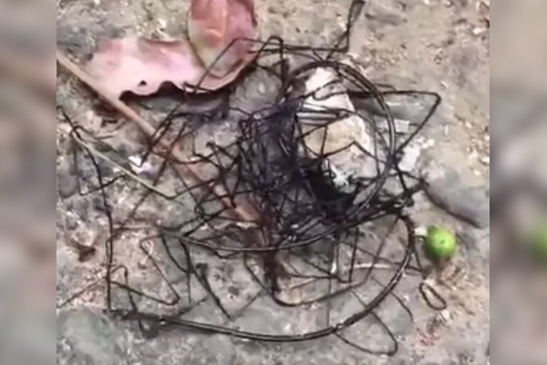 El video, que dura tan solo 23 segundos, muestra a una especie de insecto parecido a un ovillo de hilos negros desplazándose por el suelo.