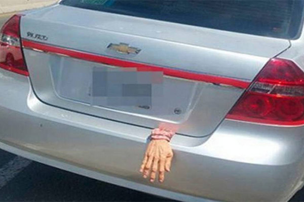 Al comenzar con la inspección, descubrieron que se trataba de una mano de plástico que el conductor había puesto para decorar su automóvil, con motivo de las celebraciones de Halloween y Día de Muertos.