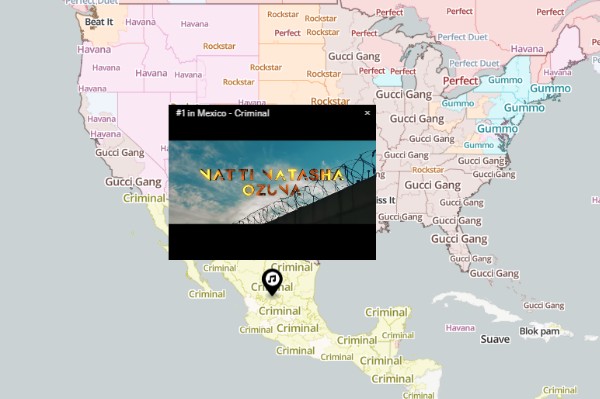 Un mapa interactivo de búsquedas en la red social de videos YouTube confirma que el género musical que más se escucha en México es el reguetón, pues la canción más sonada y buscada por los internautas fue “Criminal”, de los reguetoneros Natti Natasha y Ozuna.