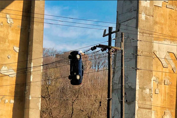 Lo que parecía parte del rodaje de una película, terminó siendo para la policía de Toronto un caso sin explicación, ante la aparición de un auto colgado debajo de un puente, simulando la posición de cabeza del hombre araña.