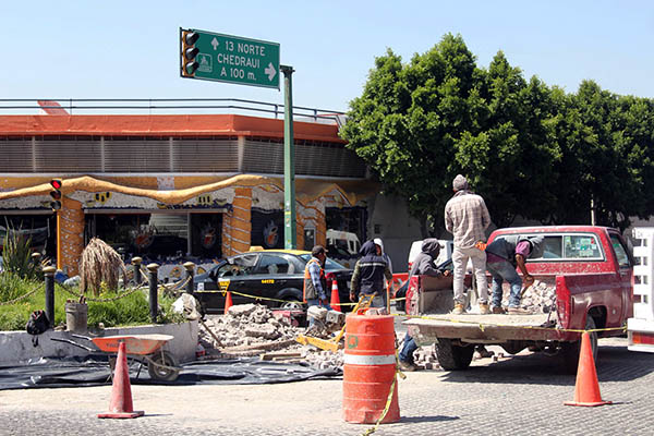Es personal de Obras Públicas el que labora en esta zona, donde ya levantaron el adoquín en la rotonda de la calle mencionada, dando un muy mal aspecto a la recién inaugurada avenida, donde se invirtieron más de 100 millones de pesos.