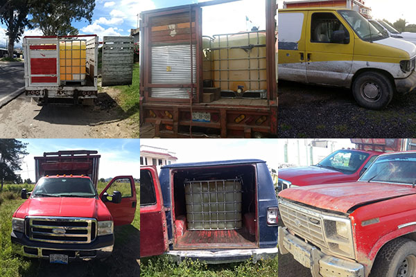 Los vehículos y combustible asegurados fueron puestos a disposición ante la autoridad competente, fungiendo como primer respondiente el personal de la Policía Estatal.