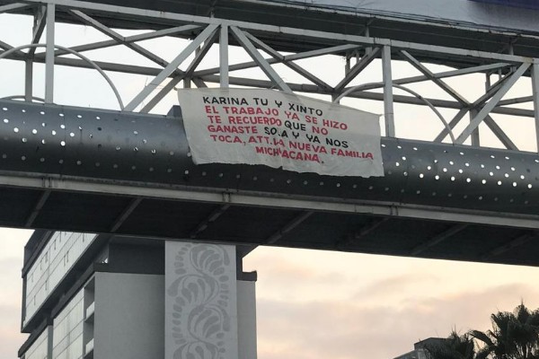 Las mantas fueron reportadas en redes sociales y en cuestión de minutos fueron retiradas por personal de Vialidad Estatal, que las aseguró y las puso a disposición de las autoridades.