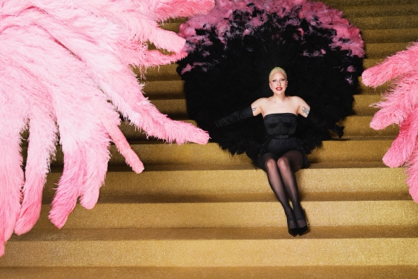 Vestida con un elegante atuendo color negro y rodeada de bailarines y plumas rosadas, la artista estadounidense cantó y bailó sobre un escenario adornado al estilo cabaret de París.