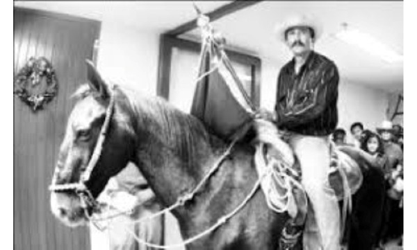En el 2002, recuerde, entró montado en brioso hasta el vestíbulo del recinto y a punto estuvieron de tirar una puerta que conduce al salón plenario. De esa manera protestaba El Barzón, del cual era uno de los dirigentes, en contra la política agropecuaria y su relación desventajosa frente a los productores de Estados Unidos por el entonces llamado TLC.