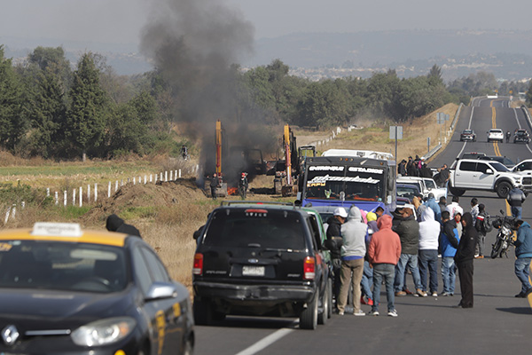 La manifestación se centró en el acceso desde el Periférico Ecológico, en San Francisco Ocotlán. Los manifestantes incendiaron dos máquinas retroexcavadoras cerca del kilómetro 3, próximo a la caseta de Zacatelco.