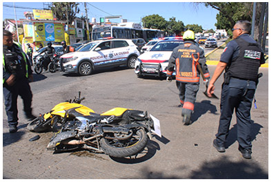Falta de equipo de protección: Circular sin el casco protector (certificado y abrochado), ni el equipo adecuado (guantes, chamarra, botas) convierte un percance menor en una lesión grave o fatal.
