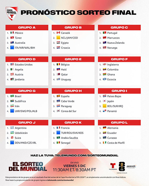 De cara al sorteo oficial de este viernes para conformar los 12 grupos del Mundial 2026, las redes sociales se han convertido en un hervidero de especulaciones. En las últimas horas comenzaron a circular supuestas simulaciones no oficiales del posible acomodo de selecciones, y aunque ninguna cuenta con validación de FIFA, una en particular llamó poderosamente la atención de la afición mexicana.