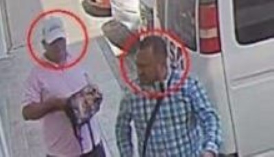 La FGE ha solicitado grabaciones que muestran a dos presuntos responsables (uno con playera rosa y gorra blanca, otro con camisa a cuadros azul).