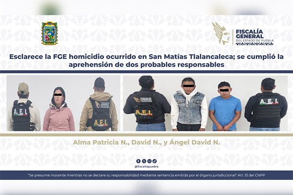 Por lo anterior, se logró la aprehensión y vinculación a proceso de Alma Patricia N., David N. y Ángel David N., como presuntos partícipes en el hecho delictivo.