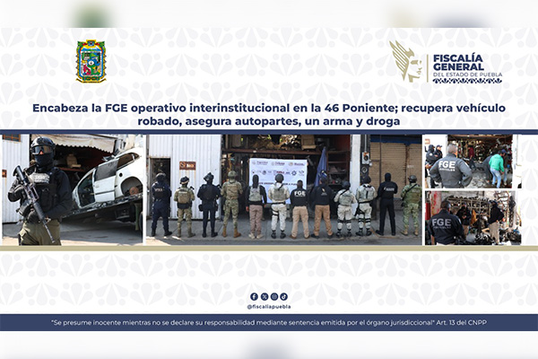 Operativo en “la 46”: FGE recupera vehículo robado, asegura autopartes, un arma y droga