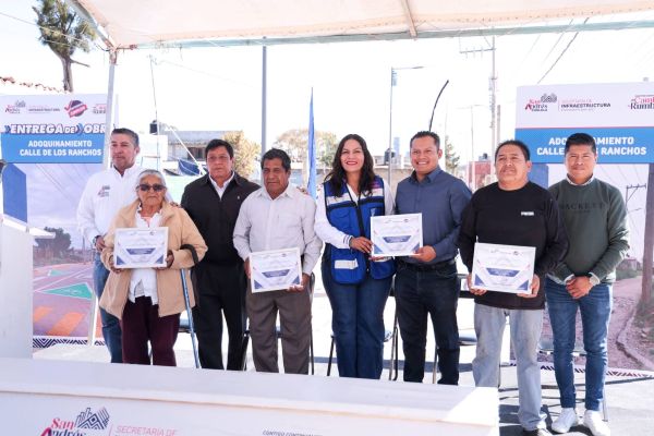 Entrega Cuautle adoquinamiento en San Bernardino Tlaxcalancingo