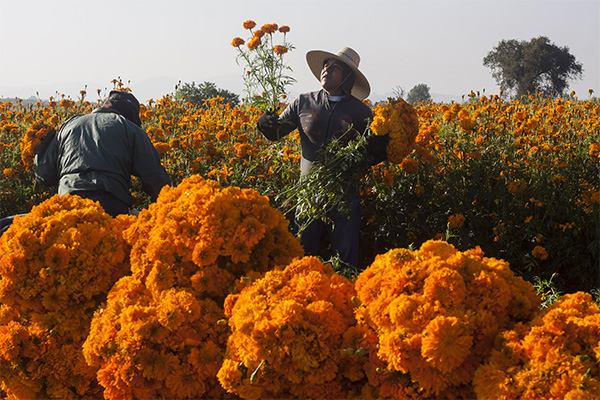 El municipio de Atlixco ya muestra colorido, miles de flores de muerto se observan como enormes tapetes en terrenos agrícolas que se acompañan del paisaje del Popocatépetl, a partir del 25 de octubre inicia la comercialización de estas flores a todo el país.