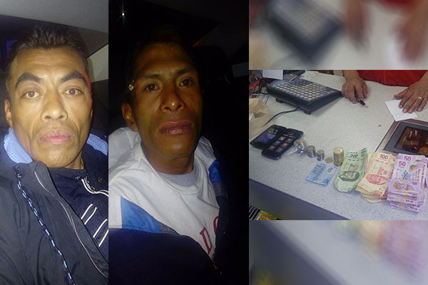 Derivado de la acción policial a Israel Torres Montes de 35 años y Saúl Ayón Arce de 41 años, se les halló 7,394 pesos entre billetes y monedas de diferentes denominaciones, así como dos celulares.