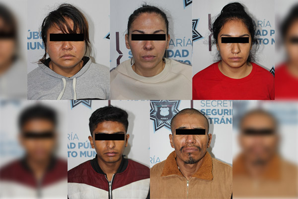 Los detenidos son Juan David “N.”, de 46 años de edad; Samantha “N.”, de 32 años de edad; Jazmín “N.”, de 28 años de edad; Zvereva “N.”, de 24 años de edad y César René “N.”, de 21 años de edad.