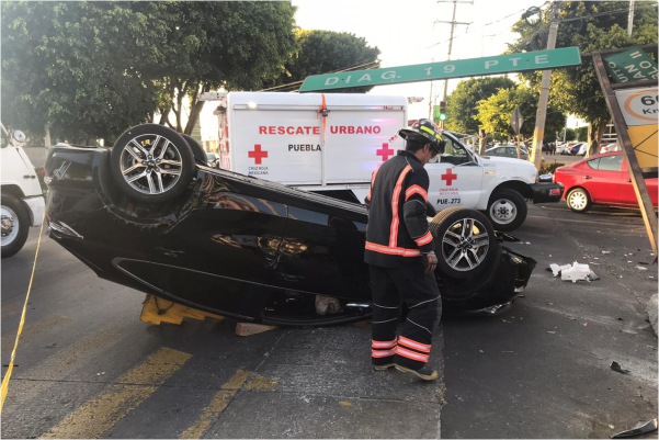 A unos metros de llegar a la Diagonal de la 19 Poniente, el conductor trató de incorporarse al carril de extrema derecha para dar la vuelta, sin percatarse que circulaba ahí un automóvil Kia Forte negro, el cual además iba a exceso de velocidad.