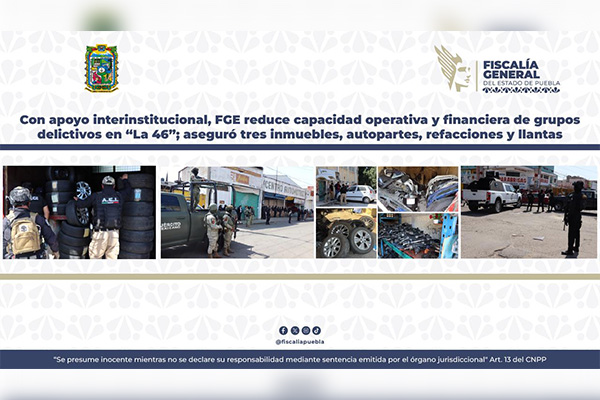 La Fiscalía General del Estado de Puebla (FGE) encabezó un operativo interinstitucional en la zona conocida como “La 46 Poniente”, en la ciudad de Puebla, en coordinación con la Secretaría de la Defensa Nacional (DEFENSA), la Guardia Nacional (GN) y la Secretaría de Seguridad Pública Estatal (SSPE), como parte de las acciones estratégicas para seguir debilitando la capacidad operativa y financiera de los grupos delictivos que operan en el área.