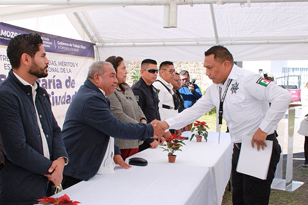 Entrega de constancias, méritos y estímulos económicos a elementos de la SSC de Amozoc